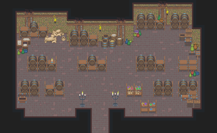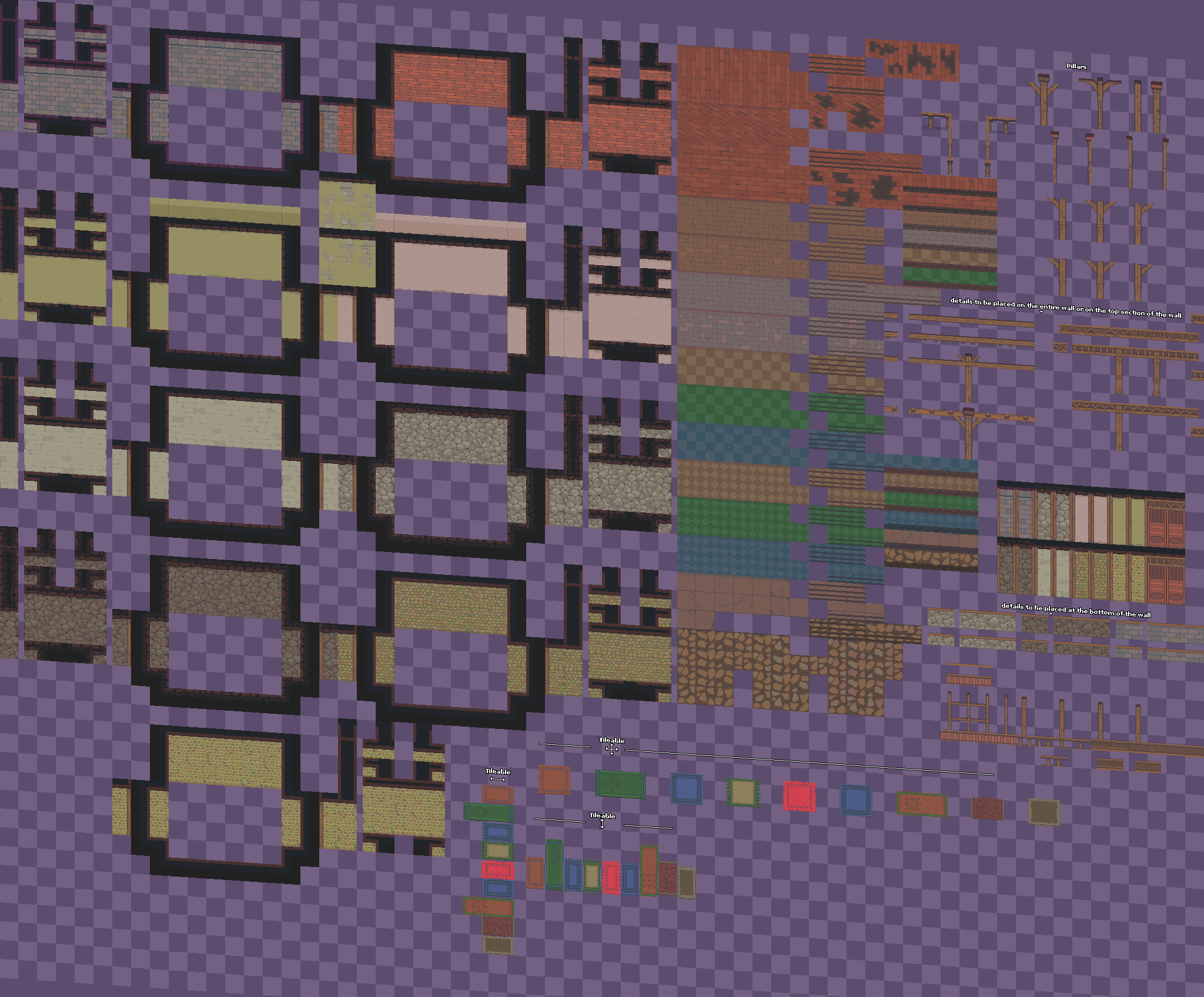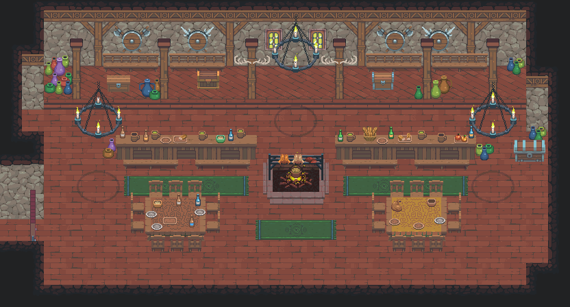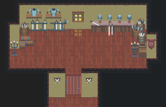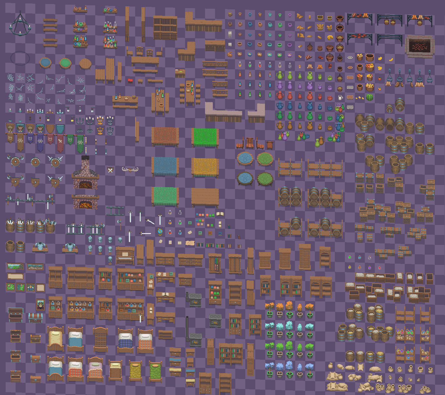 ✅ The available tilesets/doors/windows use walls from Village pack in order to be coherent (sometimes with a subtle color change)