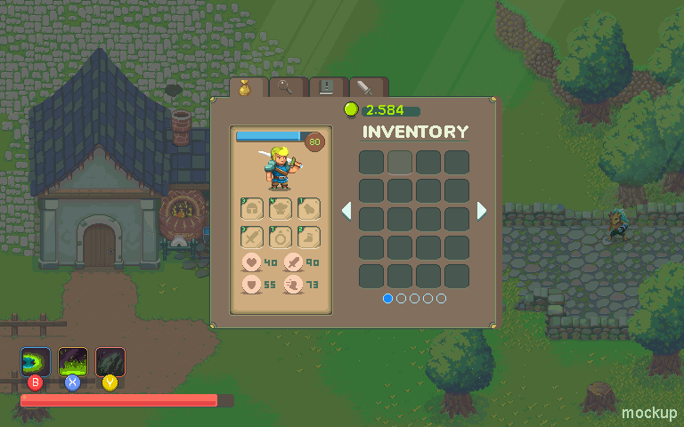 ➥ More than 100 UI elements. Skill/Slot frames, Windows, Tabs, Life Bar, Scroll, Animated Portrait for both NPCs (Vendor tent and Blacksmith), Xbox and Keyboard Buttons, Target Indicator for gamepad users and more.