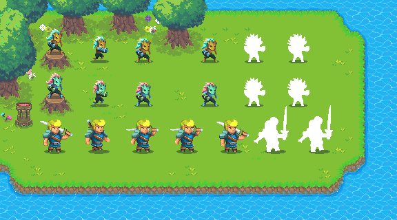 This time I've finished the character animations and added a new enemy with all animations. Initially I would just introduce the enemy design and an Idle animation and then finish everything for the next update but, since I'll focus on the Cemetery pack, I decided to take a bit longer and release everything now. I also added a bunch of new UI elements.